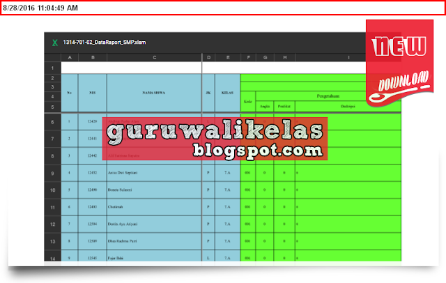 Aplikasi Raport SMP Kurikulum 2013 dengan Excel - Penilaian dan Pengisian New Update 2016/2017 |